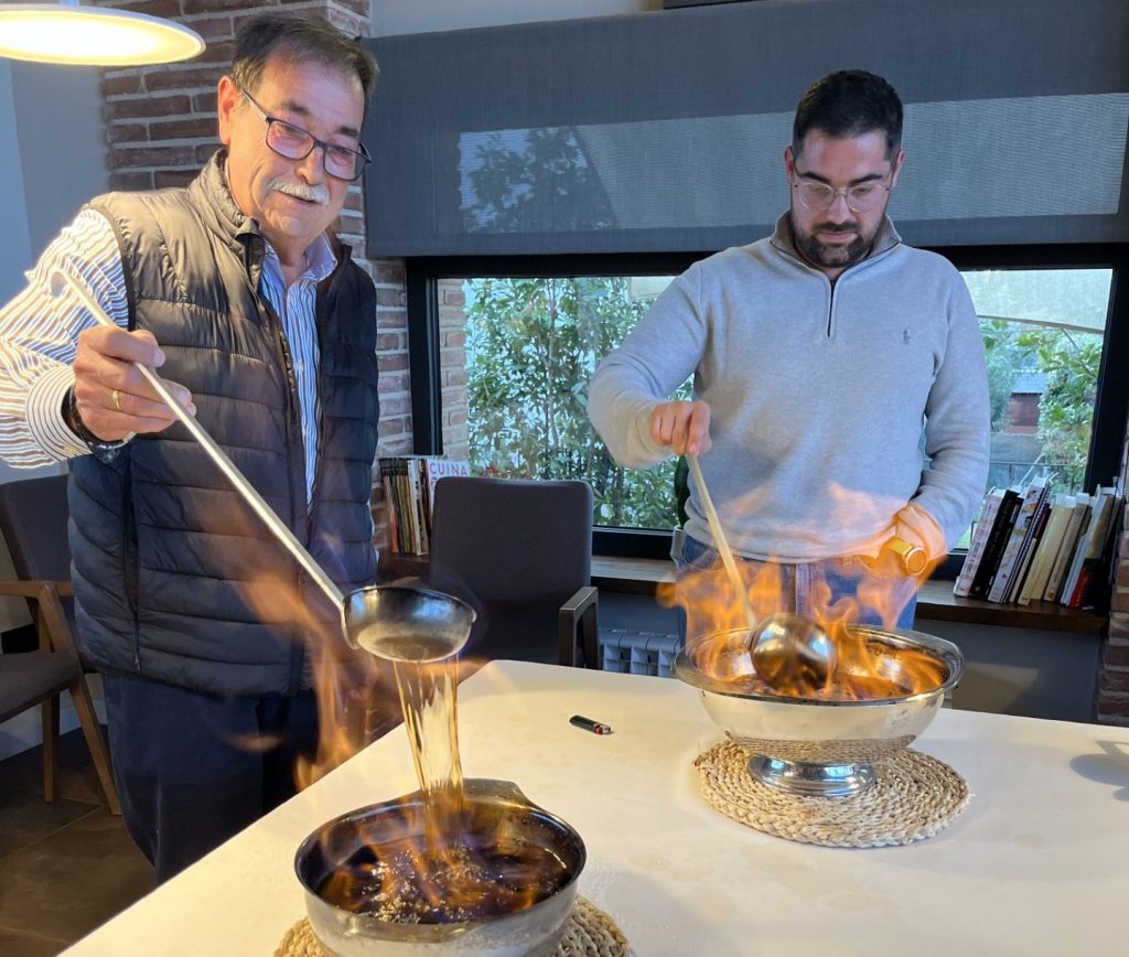 Els membres de l’Associació Gastronòmica de les Terres de l’Ebre han arrodonit el dinar amb un ‘Calmant’ del Perelló obra de Pere Martí i Roger Martí. Una beguda que ve de la Guerra de Cuba, similar a la queimada gallega o al ron cremat, molt popular al Perelló i que està feta a base de ron de canya, sucre i cafè. Precisament «al Perelló es fa la ‘Festa del Calmant’ des de l’any 1983. Des de l’any 2002 es fa també un ‘Concurs del Calmant’ i a més, hi ha una cançó creada d’aquesta beguda obra del músic Andreu Ferré» descriu Manel Pallarès, president de l’entitat ebrenca.
