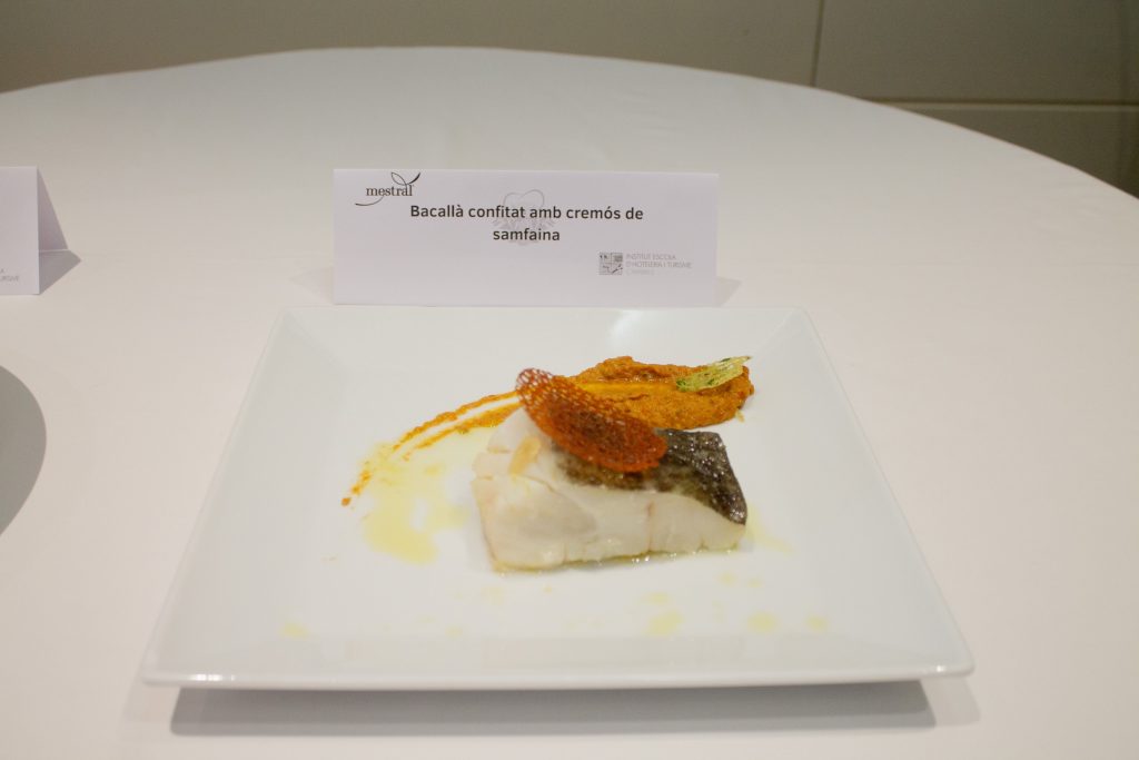 Finalment el tercer premi ha anat a parar a les mans de Mireia Rose Knibbs, alumna de 2n de Grau Mitjà, gràcies al seu bacallà confitat amb cremós de samfaina. «Vaig escollir aquesta recepta perquè volia fer quelcom senzill que pogués destacar el sabor de l’oli d’oliva verge extra Mestral i que jugués amb les textures d’una elaboració tradicional i coneguda» ha comentat l’alumna.