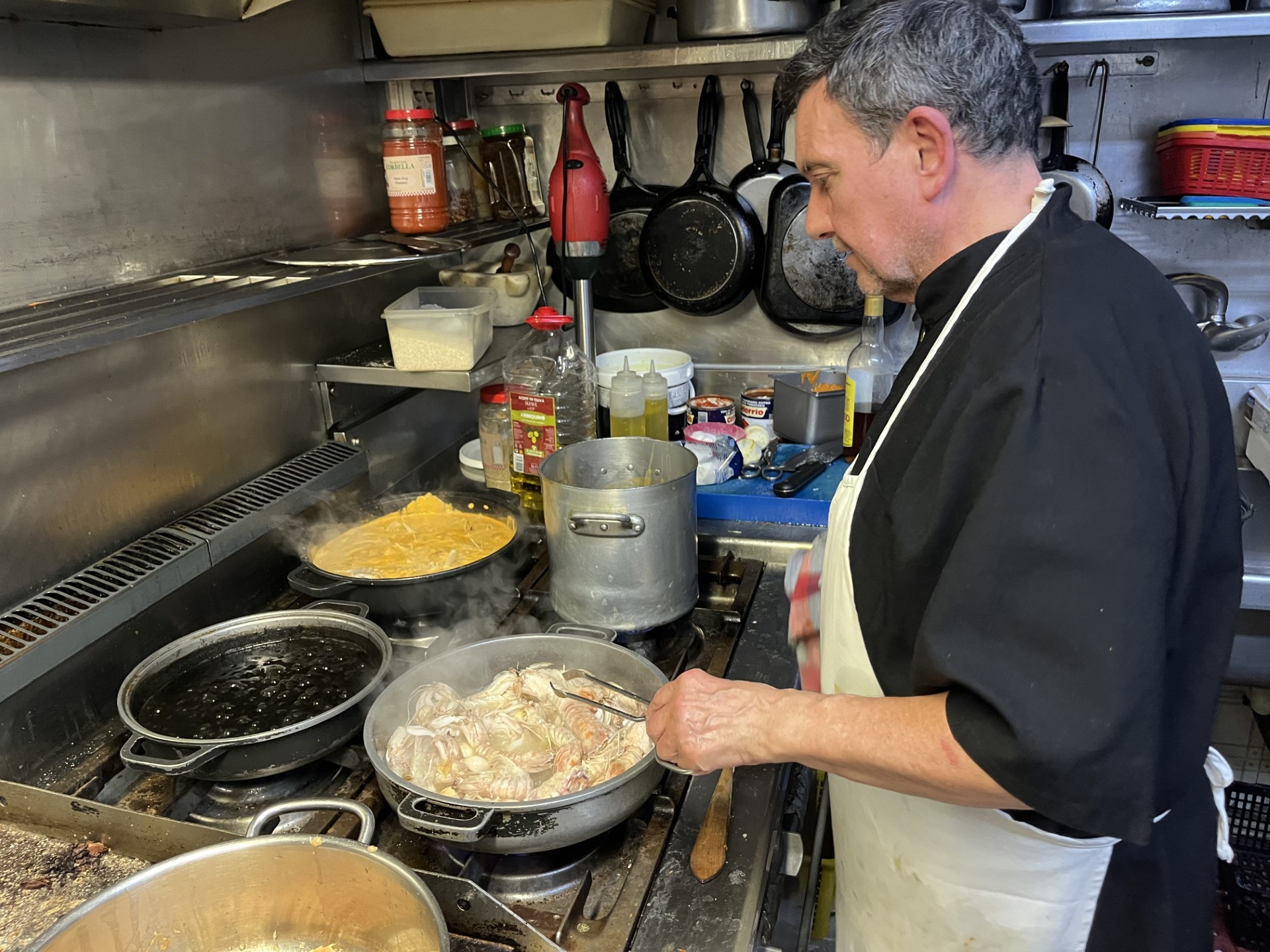 A la cuina dels Miquel’s no hi trobareu extravagàncies culinàries, ni minimalismes, ni fusions avantguardistes de cap mena. Les receptes tradicionals són les autèntiques protagonistes. Germans Miquel’s és l’olimp de la cuina tradicional marinera. El seu menjar no acapara grans titulars en revistes de cuina internacional, ara bé, té una legió infinita d’adeptes, entre ells m’hi incloc, i em declaro soci abonat del seu menú de les Jornades de la Galera «fa anys que no el canviem, i al desembre ja ens truca gent preguntant quan comencen i si hi haurà els mateixos plats que tant agraden: crema de galeres, galeres saltejades i arròs amb galeres (somriu)».
