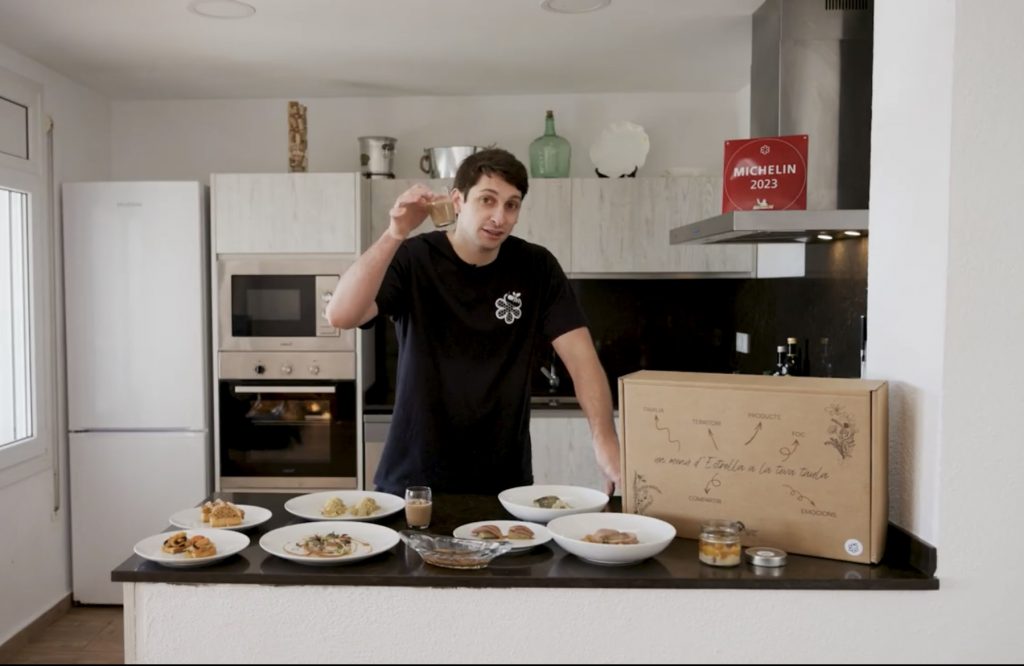 Cada plat ha estat pensat perquè arribi a casa en òptimes condicions, embassat al buit i amb instruccions clares i senzilles mitjançant un video a Youtube que permeten acabar-lo fàcilment, sense complicacions. El resultat és un menú espectacular que es tradueix en els següents aperitius: tartaleta de musclos amb escabetx; briox cruixent amb bou de mar; panxeta a baixa temperatura amb vinagreta thai; ravioli de ceps i llamàntol; caneló de carxofa amb tonyina; crema de castanyes, api i béicon; llom de tonyina balfegó amb albergínia i salsa miso. El principal a escollir es divideix en un jarret de porc farcit de foie i ceps i un bacallà beurre blanc d’algues i salsifí. Per arrodonir-ho, el dolç és sticky tofee amb mango i fruita de la passió.